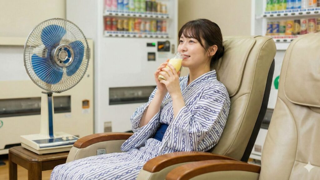 広いロビーや休憩スペースがある銭湯なら、そこで火照った体を冷ましながら、漫画を読んだり、ぼーっとしたり、ゆっくりくつろぐのもおすすめです。この「何もしない時間」こそが、銭湯の醍醐味かもしれません。