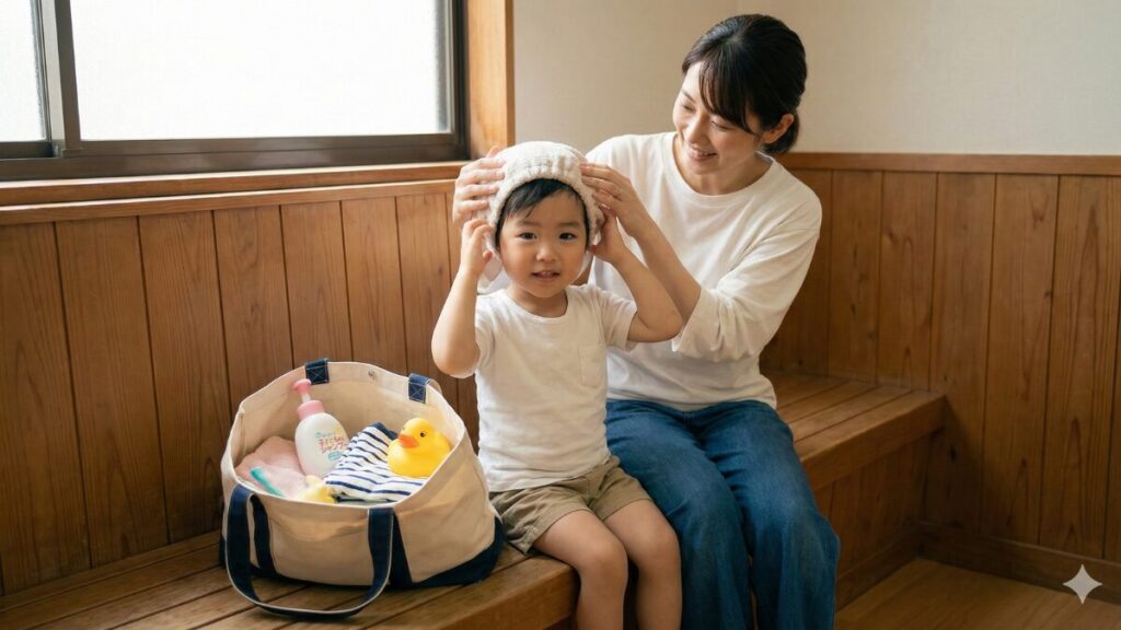 持ち物以上に最も重要なのは、「常に子どもから目を離さない」ことです。浴室内で子どもを走らせない、騒がせない、湯船で泳がせない、洗い場でシャワーを撒き散らさせないなど、周囲の利用者に最大限配慮し、安全を守ることが親の責任ですね。