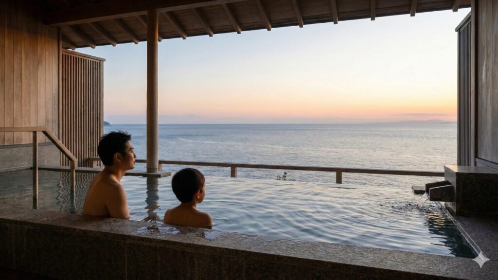 スーパー銭湯の枠を少し広げてみると、子連れファミリーにとって魅力的な選択肢がさらに見つかります。それが、ホテルや旅館が提供する日帰り温泉プランや、プライベートな空間で温泉を楽しめる家族風呂です。
