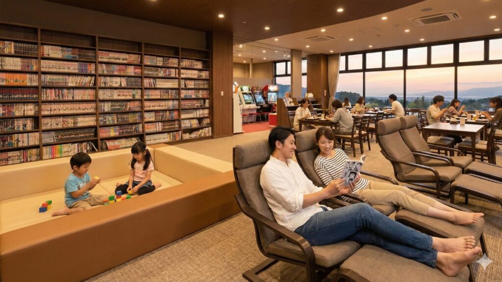 - 休憩・娯楽設備の充実度: キッズスペースやゲームコーナー、漫画コーナー、そして仮眠もできるリクライニングチェアが並んだ休憩室など、お風呂以外の時間も快適に過ごせる設備が重要です。