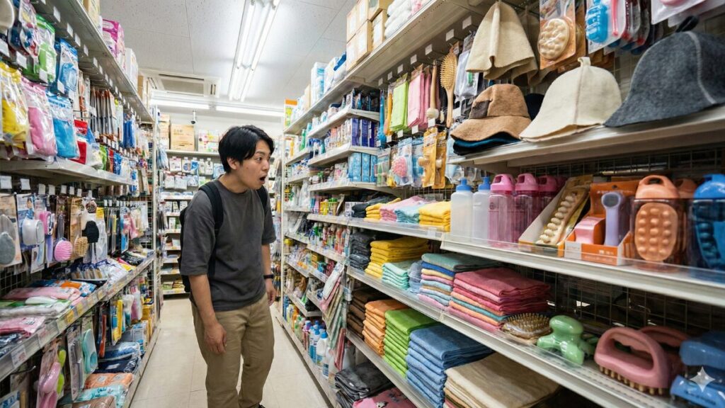 - サウナ専用グッズ: 店舗によっては300円~500円商品として、折りたたみサウナマットやシンプルなサウナハットが見つかることも。