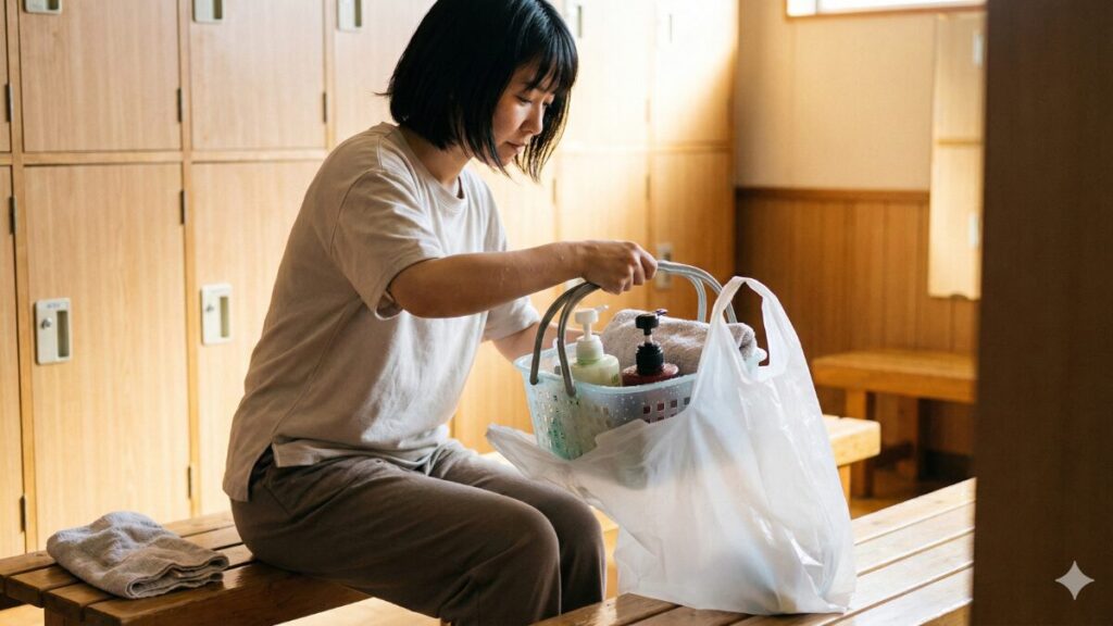 銭湯で心身ともにリフレッシュした後、意外とストレスになるのが濡れたカゴやスパバッグの持ち帰り方です。適切な処理をしないと、脱衣所の床を濡らしてしまったり、自分のバッグの中が水浸しになったりする原因となります。いくつかの簡単なステップで、スマートに持ち帰りましょう。