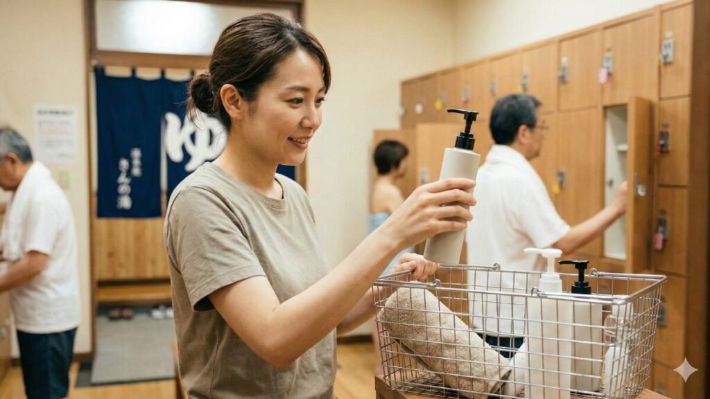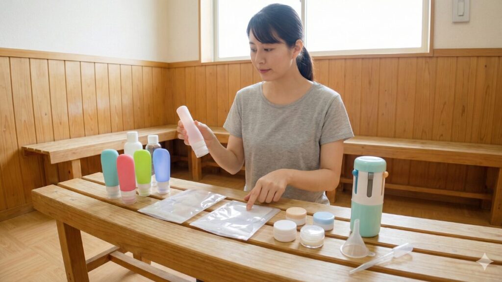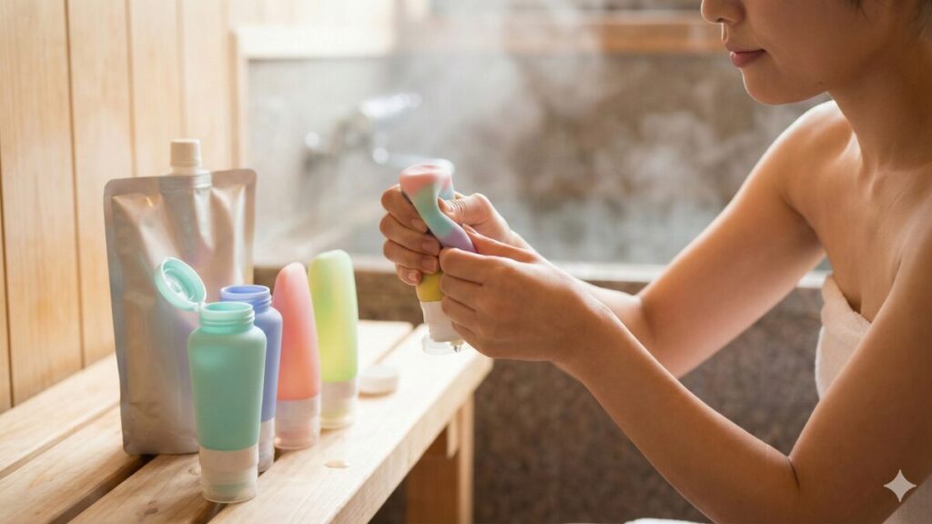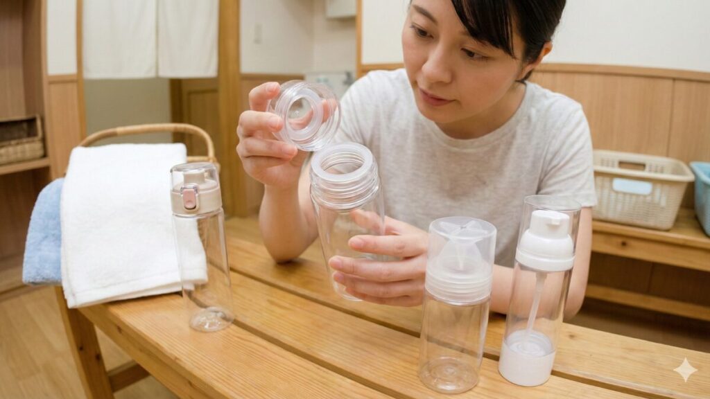 毎週のように銭湯やジムへ行く方にとっては、毎回トラベルボトルに詰め替える作業が負担になることもあります。そのような場合は、最初からスリムなポンプ式ボトルを銭湯用として用意するのも一つの良い方法です。