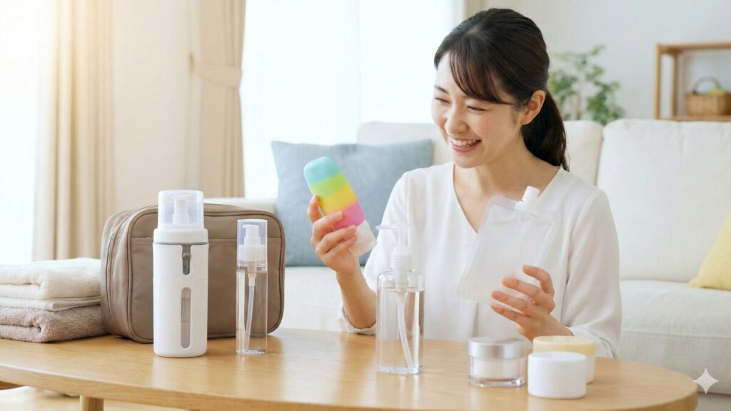手軽に試せる点で優れているのが、100均で販売されている小分けボトルです。ダイソーやセリアなどの店舗では、プラスチック製やシリコン製のシンプルなボトルを安価で購入できます。