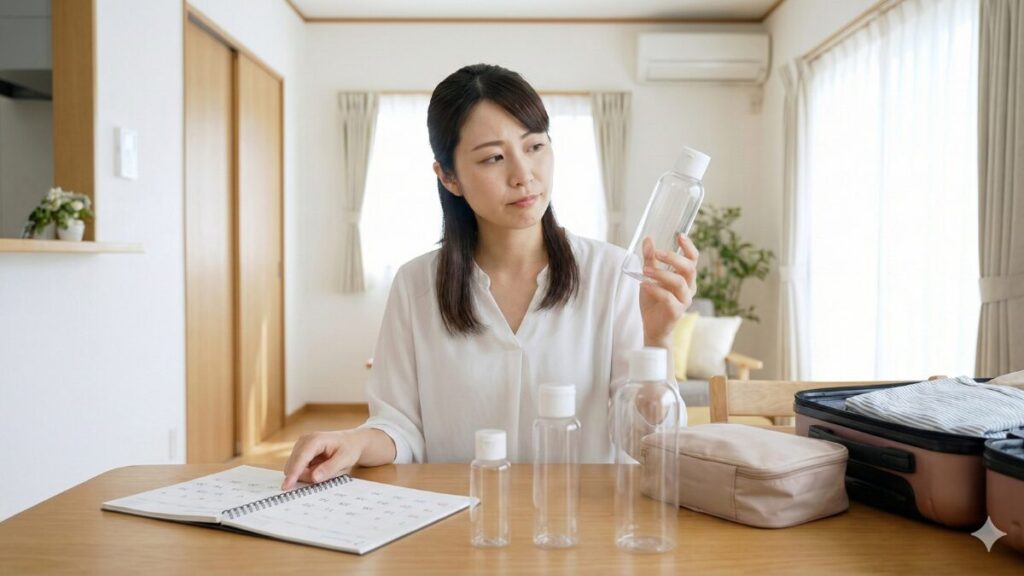 トラベルボトルを選ぶ際には、旅行や出張の日数に合わせた容量を選ぶことが重要です。宿泊日数が多ければ大容量のものが適していますし、少ない場合はコンパクトなもので十分です。
