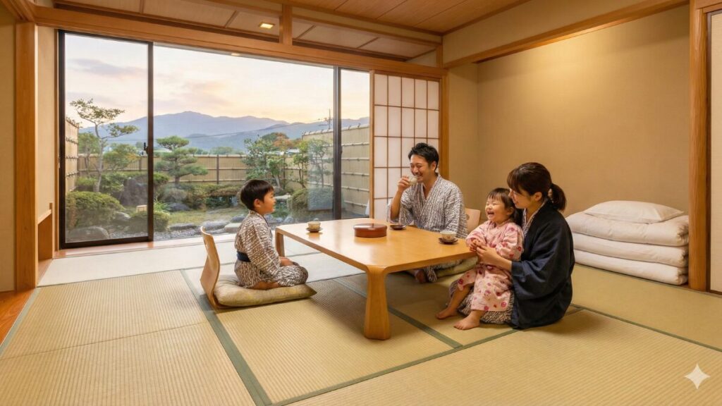 これは、ホテルや旅館のように施錠できる独立した客室(和室 や洋室 )が用意されているタイプ。これこそが、家族全員が同一空間で、プライバシーと安全を確保しながら宿泊できる唯一の形態です。