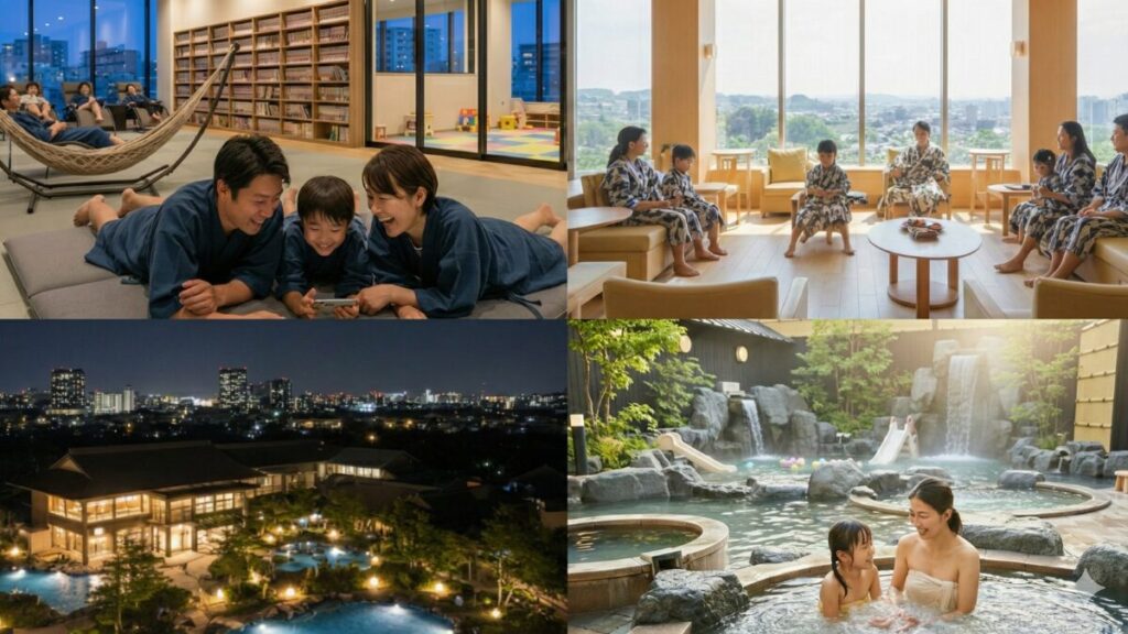 「家族で泊まるスーパー銭湯」って、すごく魅力的ですよね。広いお風呂に入って、湯上がりのご飯を食べて、そのままゴロンと泊まれたら最高!と私もよく思います。あの非日常感がたまらないんですよね。